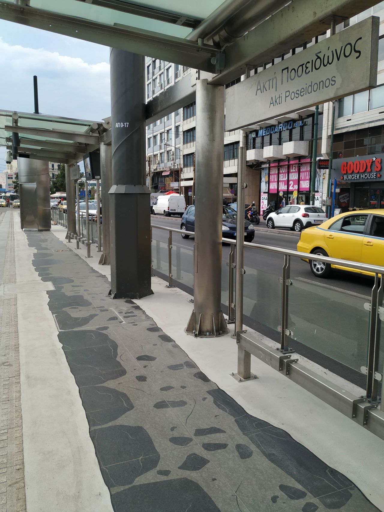 This project was a collaboration of our workshop with the Ephorate of Antiquities of Piraeus and Islands and the construction company THEMELI for the Attiko Metro. During the project by Attiko Metro for the extension for the TRAM line extension in Piraeus and after an excavation conducted by the Ephorate of Antiquities, the exact site of the ancient port of Piraeus was found where the lines were to be placed. Since it was not possible to present the findings in its entirety, because of technical difficulties, the Ephorate of Antiquities, in collaboration with an architect, designed the relics and restored it to full scale, so that it could be displayed in a different way. The idea was to display it on the platform of the new line station, at the spot where it was found. The station named "Akti Poseidonos" in the port of Piraeus (near gate E8 area). We were assigned to redesign and correct the drawings so that they would be readable by our laser cutter. We were then supplied with the material to be used ,which was Zimbabwean granite, so that we could proceed with laser engraving. The complete reconstruction of the ancient harbour of Piraeus was made by laser engraving a total of 160 pieces of granite measuring 60*60cm mostly, as well as some specifically cut pieces measuring 120*60cm. These tiles were not squared but they were water-cut so as to follow the actual design of the remains. In fact, they carried some perpendicular sides on each other and some squared ones adapted to the natural shape of the relics. Moreover, we were asked to reproduce a quite complex design, because each tile would be of a unique design which as part of a whole would represent the foundations of the ancient port of Piraeus. The process required specific moulds to be made, so that the tiles would be fully aligned on the laser cutter's working space, in order to be properly engraved (engraving across the entire surface of the granite tile, to avoid gaps or incomplete shapes). As soon as pattern engraving procedure was carried out, each tile was numbered so that we could identify which pattern referred to which piece. The total laser engraving was 62m * 1.2m, it is the largest non-stop engraving in the world, indeed. Special wooden boxes were built for where the plates would be placed and carried to the final location for their installation. Proper packaging foam was used to ensure safe transfer, protecting the cargo from scratches and breakage.
