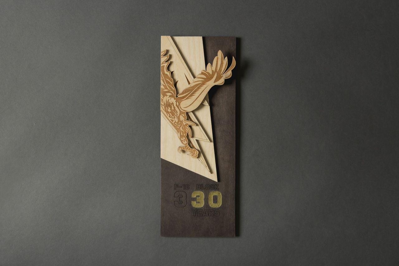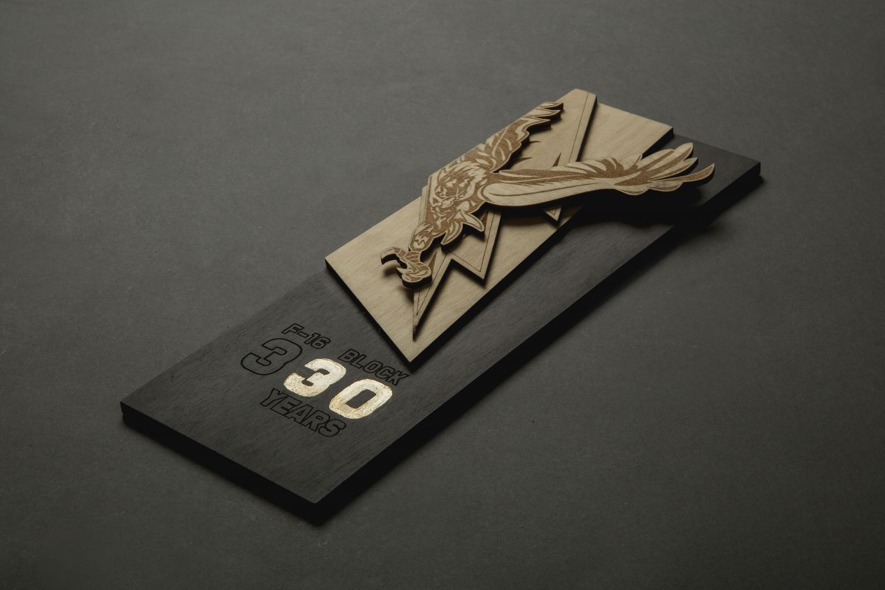 In this challenging project we were assigned to design and create a wooden anniversary emblem. After we received the redesigned anniversary badge for the 30th anniversary of the 330 Air Forces Military unit, we decided to produce something striking so that we could highlight this anniversary. The Idea that was chosen for the anniversary emblem was to render it in 3D through wood layering. For the back of the memorial emblem we used mdf wood, black coloured which acts as canvas. After deconstructing the logo we chose to use our laser cutter for the basic procedure. Laser engraving and laser cutting are the basic techniques , on plywood , for the individual elements that make up the emblem. We pricesely reproduced both the thunderbolt and the eagle, which is the key element of the construction since it is the emblem of 330 squadron. Its number appears in a two-tone black and gold so that the thirty years celebrated could easily distinguished. The whole project was depicted and structured on one large-sized piece which was placed on the squadron. In addition, individual commemoratives were reproduced which were given away to the attendees. The product was finished with black and gold colour paints and non yellowing acrylic glazes (matte). It has a hidden hanging hook on its back appropriate for wall mounting.